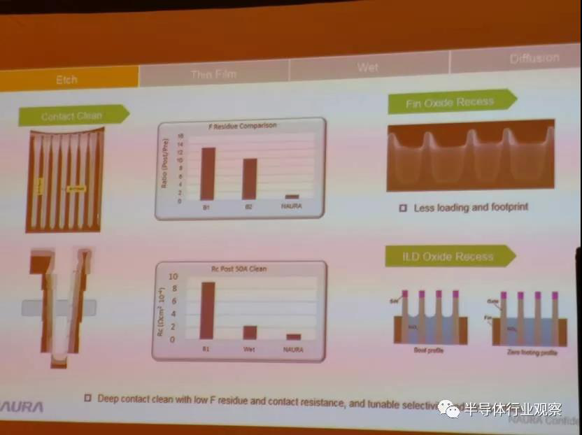 公司在Epi SEG preclean中表現(xiàn)出low-reoxidation特性,在Dual Gate oxide preclean中采用low temperature工藝,對(duì)光刻膠沒(méi)有損害。同時(shí)在STI oxide recess和Silicide/CT Dep preclean中展現(xiàn)的可調(diào)的剖面和可選擇性都非常好。
