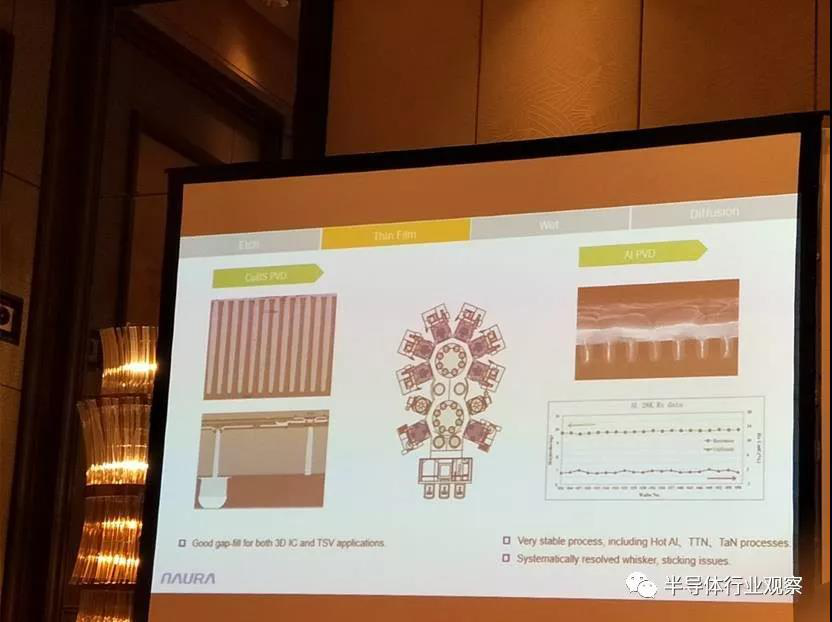 Thin film也可以分為logic和memory,公司的薄膜淀積工藝在Logic、DRAM和3D NAND都是適用的。第一部分是contact area,公司具有constant process。公司研發(fā)了十個(gè)腔室的平臺(tái)。這個(gè)平臺(tái)是至今在金屬化的平臺(tái)里最大的一個(gè)平臺(tái),后面有兩個(gè)真空機(jī),前面有一個(gè)大機(jī)械手,這樣同時(shí)可以裝十個(gè)腔室,而且都處于高真空下。這個(gè)平臺(tái)及工藝滿足了現(xiàn)有需求,客戶非常認(rèn)可。左面圖是IC和3D封裝的工藝結(jié)果。不管是IC和3D封裝,公司做銅互連的工藝非常得到客戶認(rèn)可。右面圖是做鋁的工藝結(jié)果。公司設(shè)備在Hot Al、TTN、TaN工藝方面表現(xiàn)出色,具有穩(wěn)定出色的工藝。二是公司在解決whisker和sticking問(wèn)題上有一套整體的解決方案,提升客戶的產(chǎn)量。