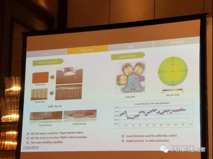 公司的PVD工藝在IGBT Hot Al和Silicon外延方面也得到了客戶的認(rèn)可。公司在IGBT中的薄膜處理工藝能力優(yōu)異,而且對(duì)NiV film stress可以保證低于30MPa仍不發(fā)生翹曲。在Silicon外延中可以保證優(yōu)異的厚度和Rs均一性,并且公司工藝在大規(guī)模生產(chǎn)中保持穩(wěn)定。